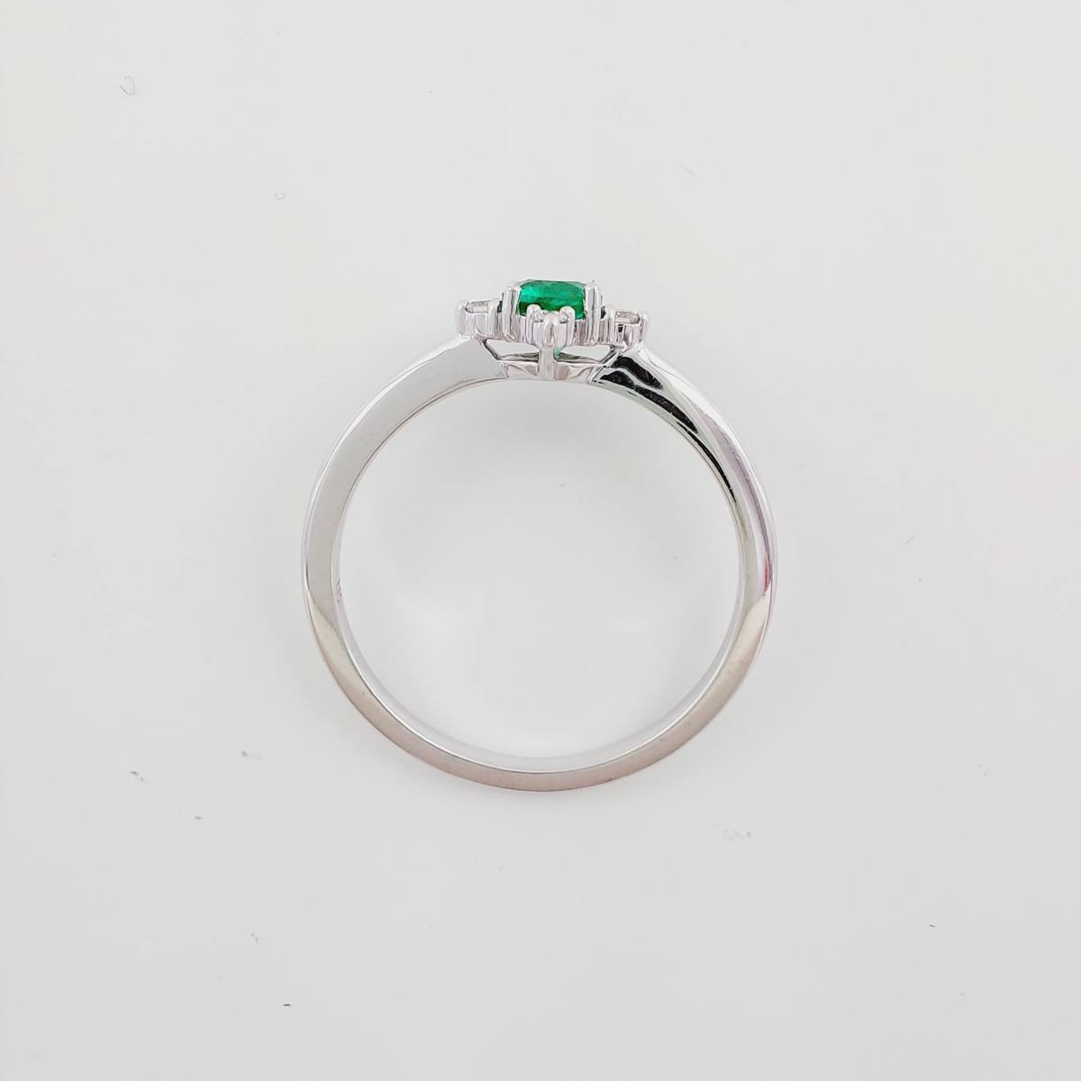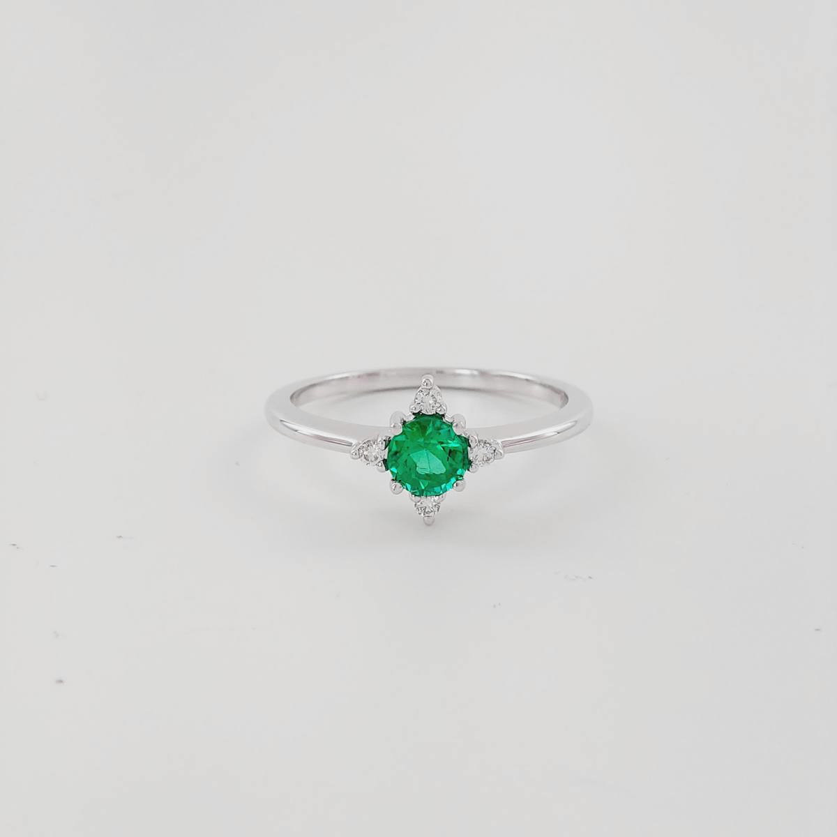 Sortija en oro blanco de primera ley con esmeralda central redonda de 0,27 ct rodeada por diamantes en talla brillante de 0,04 ct. (Se entrega certificado de autenticidad) (Especificar talla en información adicional en el checkout) Si hay en stock, entrega en 7-10 días hábiles.