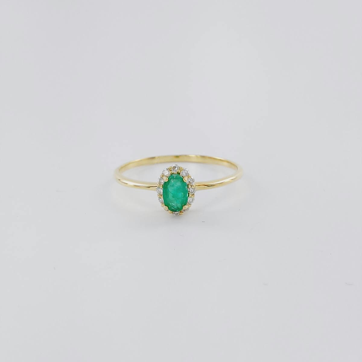 Sortija en oro amarillo de primera ley con esmeralda central en forma ovalada y orla de diamantes. (Se entrega certificado de autenticidad) (Especificar talla en información adicional en el checkout) Si hay en stock, entrega en 7-10 días hábiles.