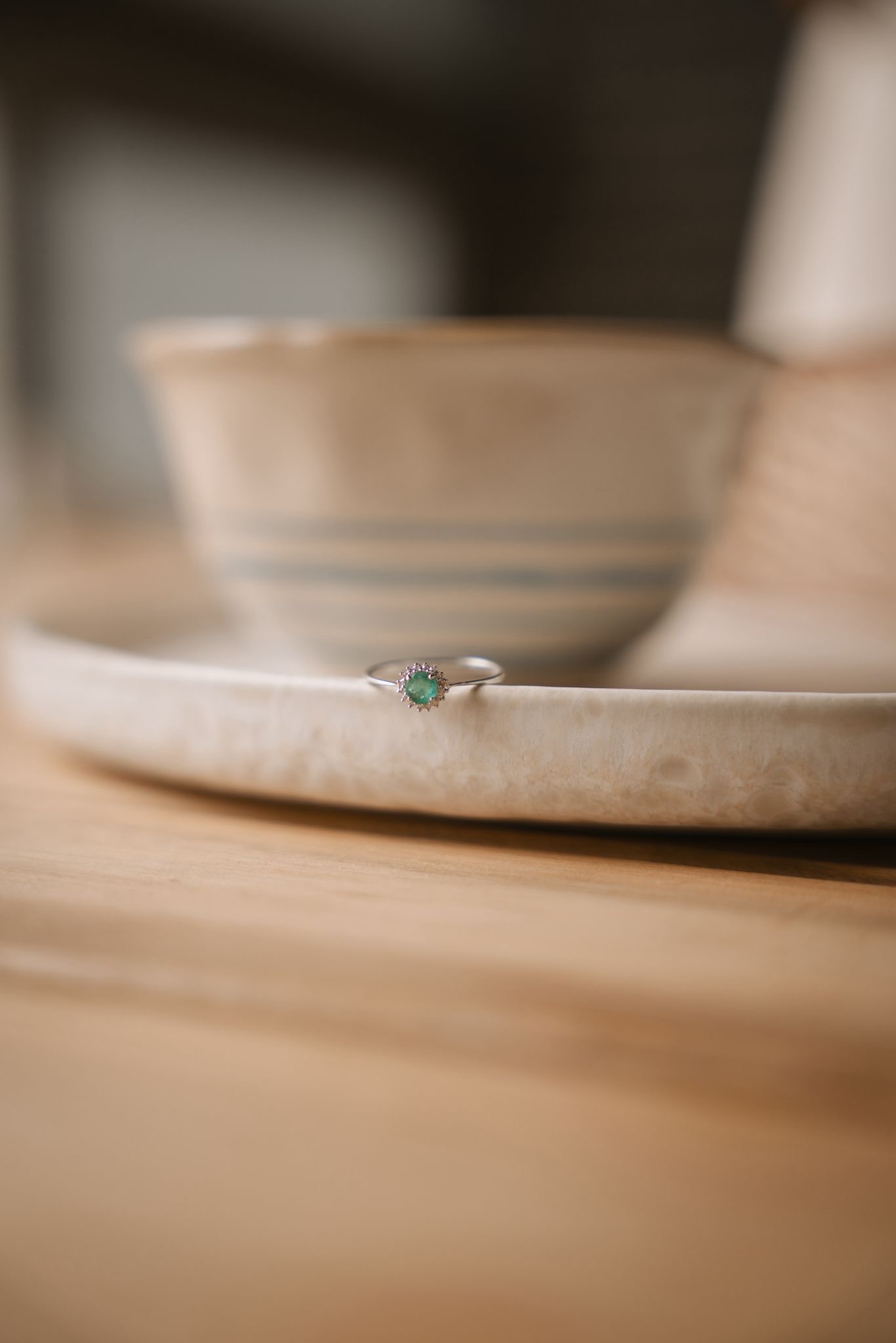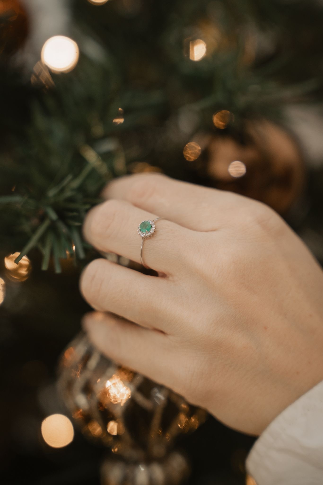 Sortija en oro blanco de primera ley con esmeralda de 0,29 ct y orla de diamantes de 0.049 ct. (Se entrega certificado de autenticidad) (Especificar talla en información adicional en el checkout) Si hay en stock, entrega en 7-10 días hábiles.
