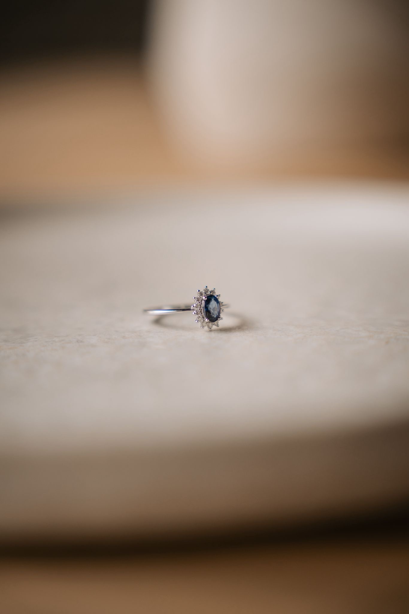 Etiqueta: Oro blanco zafiro y diamantes.